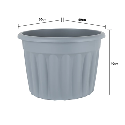 Set of 3 Traditional 60cm Round Planters in Upcycle Grey. This planter is suitable for both indoor and outdoor use being weather resistant and lightweight. Approx 69L Capacity. Colour may vary subject to the nature of the recycled material used