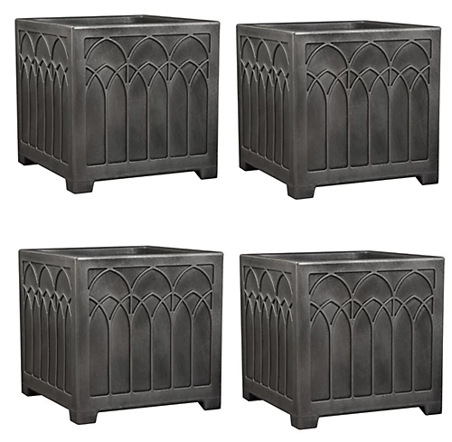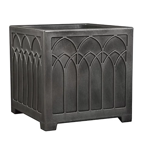 Grey plastic planter in a gothic design