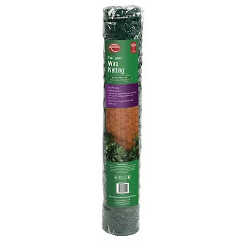 Tough, PVC coated wire netting. Ideal for fencing, plant protection, crop protection, plant support, pet enclosures, garden arches, and poultry runs. Easily formed and cut to required shape and size. Simple to use.