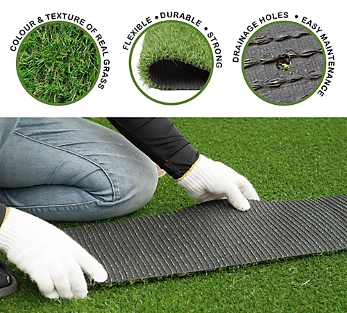 - EASY TO CLEAN AND MAINTAIN: Easy to clean this artificial grass is perfect for families with children and pets. The lawn features drainage holes that allow water to seep. Simply rinse the lawn with a garden hose and allow to dry.