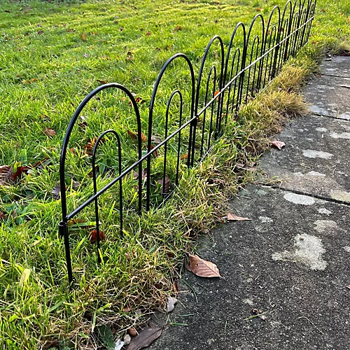 This set of 5 lawn edging panels link together to make an attractive perimeter for the lawn or a flower border. Featuring an attractive bar bow top style arch within an arch design, each 45cm section interlocks for stability and is made from strong, black coated wire for long-lasting service.