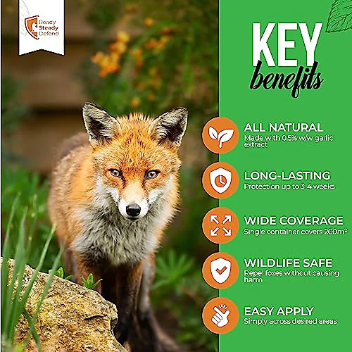 - All-Natural Formula: Our Fox Repellent Granules boasts an all-natural formula that is gentle yet effective. Crafted with 0.5% w/w garlic extract (granulated), this product provides a safe and eco-friendly solution to deter foxes. By utilizing natural ingredients, you can confidently protect your outdoor spaces without compromising the well-being of the environment.