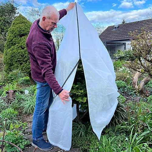 One of the thickest fleece jackets on the market giving vulnerable plants, shrubs and trees all the support they need over the harsh British winter. Most fleece jackets are 30-35gsm whereas these ultra-thick fleece jackets are a whopping 50gsm giving ULTIMATE PROTECTION against cold weather, frosts and garden pests. Thick enough to keep tender plants nice and cosy but permeable enough to allow light, moisture and air through to ensure healthy growth. Comes with drawstring for a snug fit. Available in a range of sizes and as singles or value multipacks.