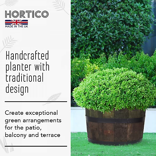 This HORTICO Upcycled Oak Half Barrel Style Planter is a handcrafted solution for those looking to add a touch of sustainability to their garden. Made entirely of upcycled oak, this outdoor plant pot offers a unique and rustic feel to any outdoor space. Its durability and timeless design make it an ideal choice for those seeking a long-lasting and eco-friendly addition to their garden.
