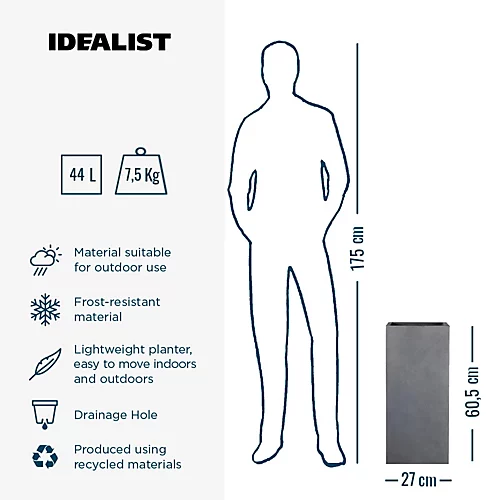 - UV & FROST RESISTANT tall square plant pot. This dark grey planter has a contemporary concrete look. Place it in the garden for stylish flower arrangements