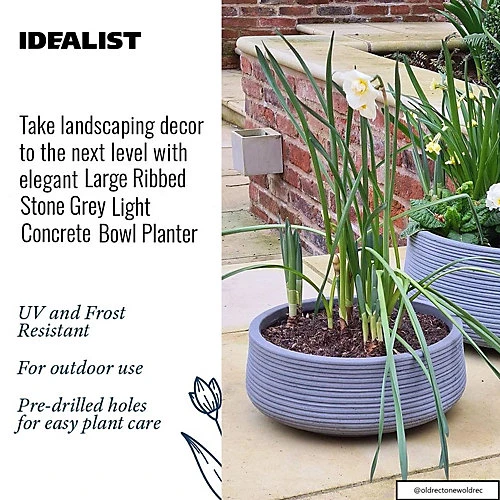 - UV & FROST RESISTANT alpine planters outdoor. This classical ribbed grey bowl would work for all kinds of garden flower arrangements