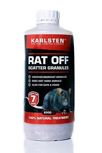 Karlsten all new Rat and Mice granules for effective treatment of repelling and deterring small rodents leaving a nice smell for humans but a smell that rodents are unable to handle.