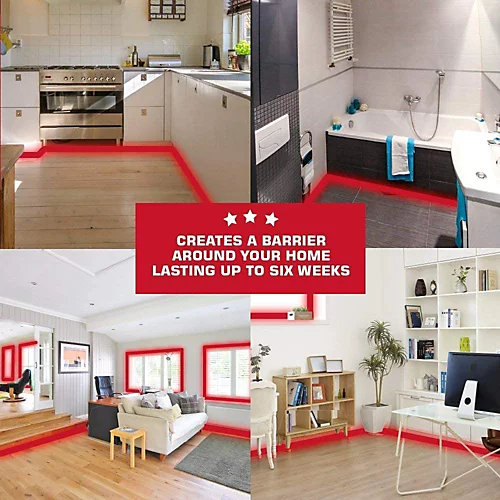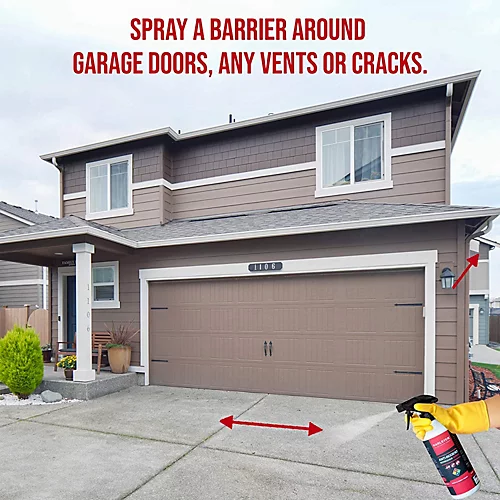 - Please clear pets from the room when treating the area… LASTS 2-4 WEEKS – Spray on heavy for your first application to soak all areas . Make sure to spray under decks, openings around your home, and very heavy on your dust bins (Also spray a 2’ foot circle perimeter around your trash cans or tiny cracks around your home) After the animal is gone use every 2-6 weeks depending on rain conditions to naturally repel them for good. If you are currently in an infestation spray heavy and often-
