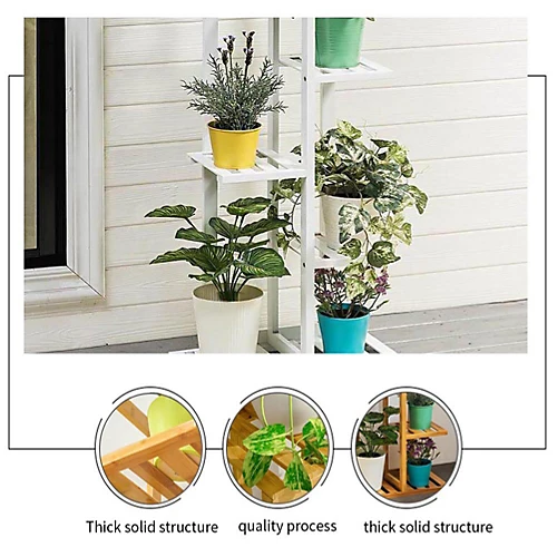 This ladder shelf boasts its rustic finish, which goes well with most plants. Sturdy bamboo wood structure, strong load-bearing. A great companion for your potted plants, put it in your indoor or outdoor space for a style update. Its practicality owes to its 5-tier design.