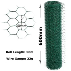Easipet PVC Coated Green Chicken Rabbit Wire/Mesh For Aviary Fencing Garden 50mm X 60cm X 50m