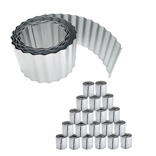 Contemporary edging to give a designer twist to your borders. Made from rigid wavy steel to protect it from damage by strimmers, simply unwind along the border. Edging eliminates the need for constant trimming, as the edge stops the grass from growing sideways and reduces weed transfer. Quick and easy to install, it can be easily cut with tin snips.