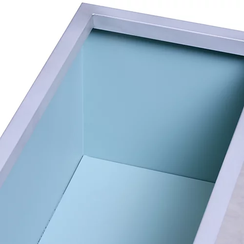 These modern, zinc galvanised steel planters with a shiny surface beautifully contrast with various plants’ soft contours and shimmering foliage. Although not fully watertight, they’re lightweight and easily movable.