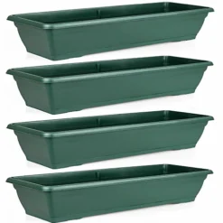 Set Of 4 Green Rectangular 72cm Large Green Garden Plastic Trough Balcony Planter Flower Plant Pot Window Box.