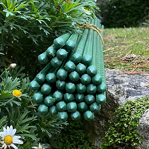 Measuring 140cm high, this bumper pack of 80 sticks are all 1.1cm thick and made from plastic coated metal that is textured to provide grip for plants, netting or fleece.