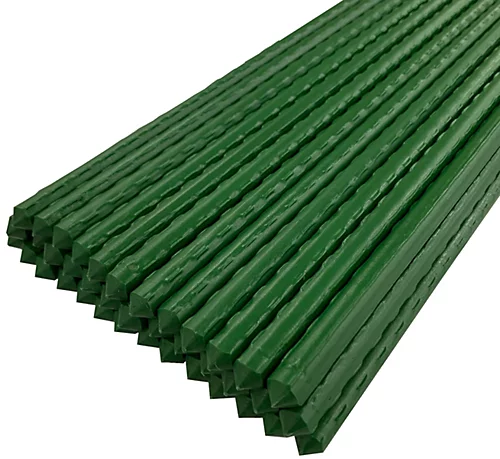 Measuring 80cm high, this bumper pack of 80 sticks are all 0.8cm thick and made from plastic coated metal that is textured to provide grip for plants, netting or fleece.