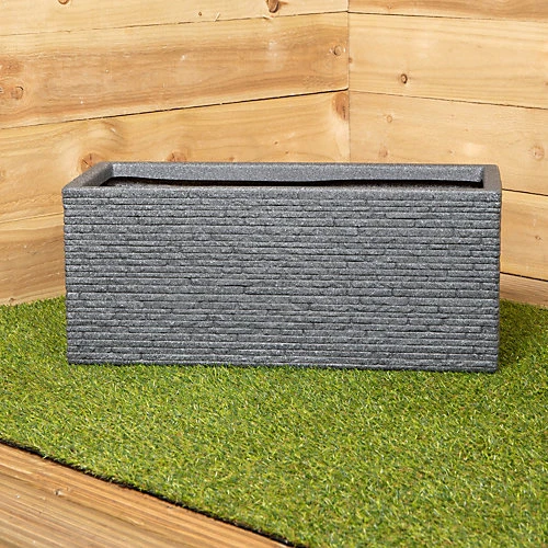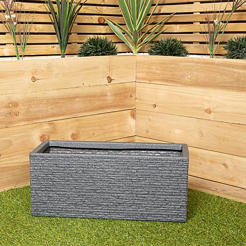 This stylish ash coloured plastic planter with textured slate effect is perfect for any garden. Suitable for indoor or outdoor use as is durable and frost proof. Made in the UK from recycled materials. Fully recyclable