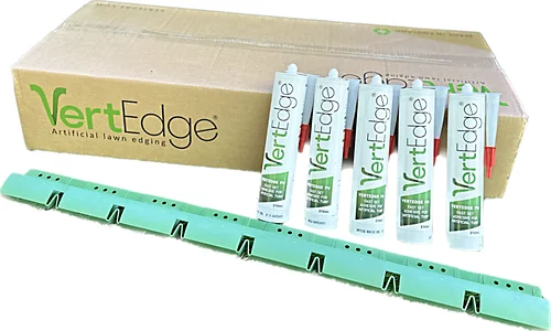 VertEdge is a revolutionary edging system used to 100% fully adhere the perimeter finish of artificial grass (the only product on the market to do so).