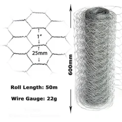 Easipet Chicken Wire Mesh Galvanised Fencing 25mm X 60cm X 50m (22g)