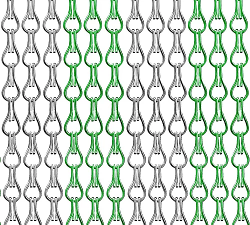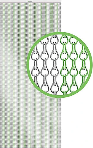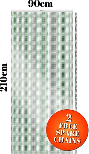 This functional Green And Silver fly chain screen (with 2 FREE spare chains and hanging fixtures included) effectively prevent flying insects from entering your home or business
